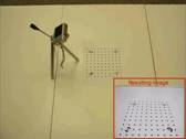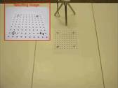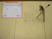 | 写真測量利用に際し、精度向上の為のキャリブレーション撮影を行います。 この作業は写真測量(以下:本撮影)に対する準備作業(補正データ取得撮影)となりますので、本撮影の条件に合わせて同等条件となるようお願いいたします。 「キャリブレーショングリッド」を撮影規模に合わせて大小2種類を用意しておりますのでどちらかを選択し、プリントアウトしたシートを4方向より合計12枚撮影します。凹凸の無い床と、三脚を用いた撮影、十分な光量を確保することが必要条件となります。この撮影時に設定された“絞り”や“焦点距離”などの条件が、本撮影に対する補正基準となりますので、慎重な撮影環境の選択をお願いします。 |