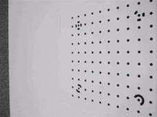 | デジタルデータは、JPEGを標準とし本撮影の環境に合わせた同等の解像度と画素数の設定をお願いします。 また、キャリブレーショングリッドの点が画像にハッキリと写ることが条件です。画像例では“角部分の点が見切れている”為補正データの取得率が多少低下しますので、余裕(余白)部分をもう少し確保されることをお勧めいたします。 このキャリブレーション撮影にて得た補正データは、以後のサービス利用に対して共有することができます。 |