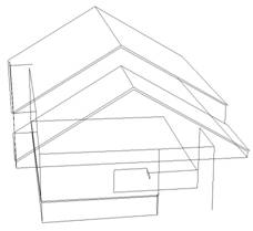 撮影された画像データ9枚をもとにワイヤーフレームを起こしましたが「キャリブレーション撮影」による調整を行っていないカメラですので 「歪」が確認されます。ワイヤーフレームにスケール(寸法)を当てる為 屋根形状の最長辺を180mmとして設定してみると、立方体の一部の 実寸90mmの辺が81mmとなってしまいました。撮影枚数を増やして、 別のアングルの画像を用いることができれば歪も軽減されます。 現地ロケハン時点で対象物の一部を採寸しておくことによりスケールを 当てはめたワイヤーフレームを決定できますので、柱の高さや、間口幅、 その他なるべく距離の長いものを採寸しておいて下さい。 |