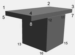 ![]() 対象物の全容が連続して見える複数毎の撮影 対象物の周囲四方八方を取り囲むように撮影された多数の画像が必要となります。 それぞれの画像は対象物の全容を納めるように、撮影するのが理想ですが、実際に隣接物や樹木、電柱、その他の障害物が写りこんでしまうため非常に困難なケースが多いです。右の画像のようにサンプル対象の“角”に相当する箇所を基準としてワイヤーフレームを構成しますので、線分となる図中番号の「1と4」もしくは「5と8」の間が樹木等により 撮影できなくても構いません。 この画像を基準として対象物の全周囲を8~12枚程度の目安として均等に撮影して下さい。その際、次に撮影する画像内に撮影済み画像中の“角”の概ね半数以上が写るようにして下さい。例えば、図中番号2・3・4・7・8・11・12・15・16を含めた上で、撮影されていない(図の裏側に位置する)6・14に相当する“角”を撮影する、と言うような雰囲気で次の撮影を試みて下さい。 隣接物や樹木等により全周囲を均等に撮影することが難しい場合や、地形により到達できない場合もありますが、あまり神経質にならなくても結構です。 図中番号のあるひとつの角について概ね4枚以上の別角度から撮影された画像があれば(精度は低くなりますが)図化不可能ではありません。但し、以下のような撮影例は図化に対してあまり効果がありませんので、ご参照下さい。 |
